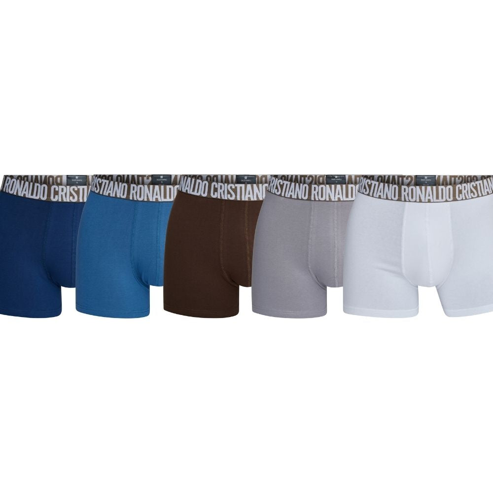 CR7-Boxers Homem em Algodão Orgânico - Pack de 5 Unidades em cores Sortidas com Oferta de Saco de Viagem
