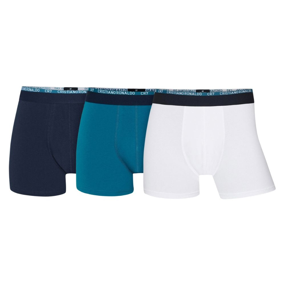 Pack 3 Boxers CR7 UNDERWEAR Homem – Algodão Orgânico | Marinho, Azul e Branco