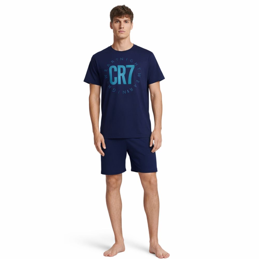CR7 Pijama Homem de Manga Curta com Calção (Azul Marinho) - 100% Algodão