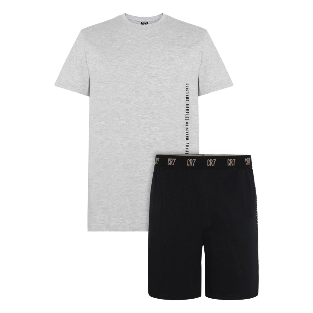 CR7 Pijama Homem de Manga Curta com Calção (Cinza Claro e Preto) - 100% Algodão