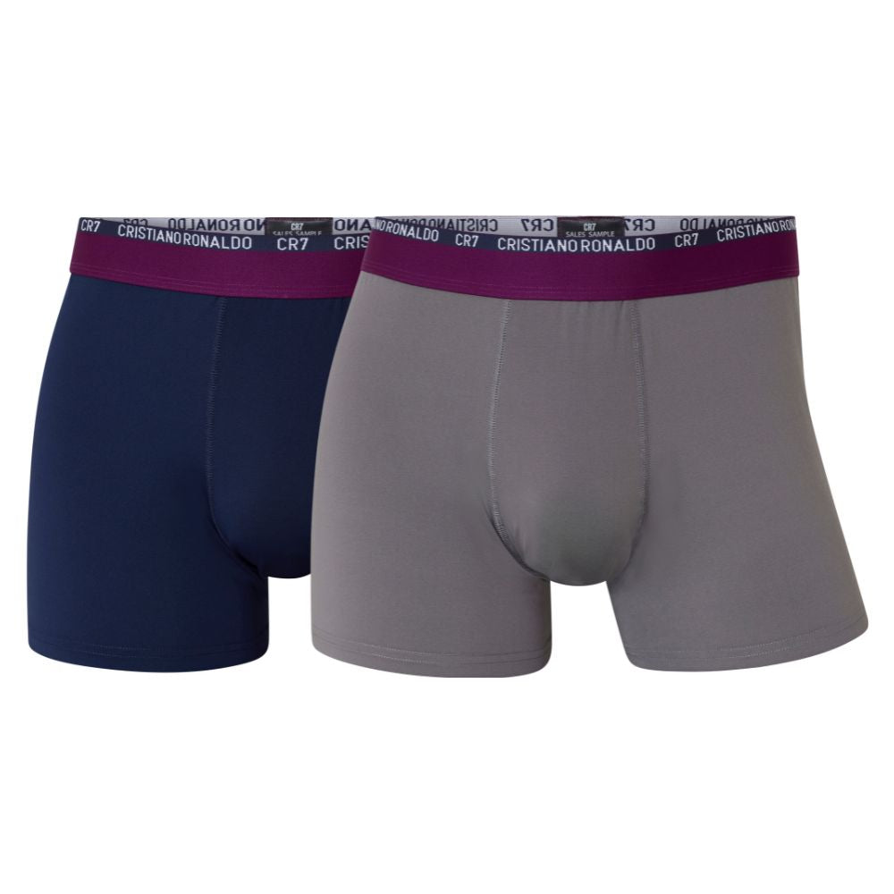 Boxers CR7 UNDERWEAR Homem - Pack de 2 em Microfibra Extra Suave (Marinho/Cinza) - Elástico em Contraste - Duráveis e Respiráveis